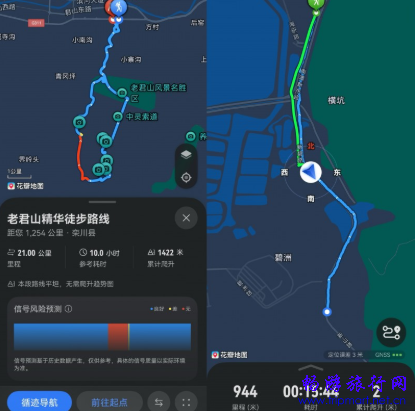 行进过程中,路线偏航和信号盲区风险,是探索者在长距离穿越过程中的核心顾虑。花瓣地图“循迹导航”通过智能提醒全程护航,当路线偏航、距里程碑达到整数公里、进入无信号区域等关键节点,系统将自动触发语音播报,帮助用户实时掌握行程动态,规避迷路风险。配合业界首发信号地图功能,通过不同颜色直观标注“信号良好/较差/无信号”区域,让信号盲区“可视化”,方便用户预判应对。若需折返,用户还可随时通过“原路返回”功能,调取最近14天的轨迹记录,从任意历史轨迹点启动返航,确保探索进退从容、全程可控。